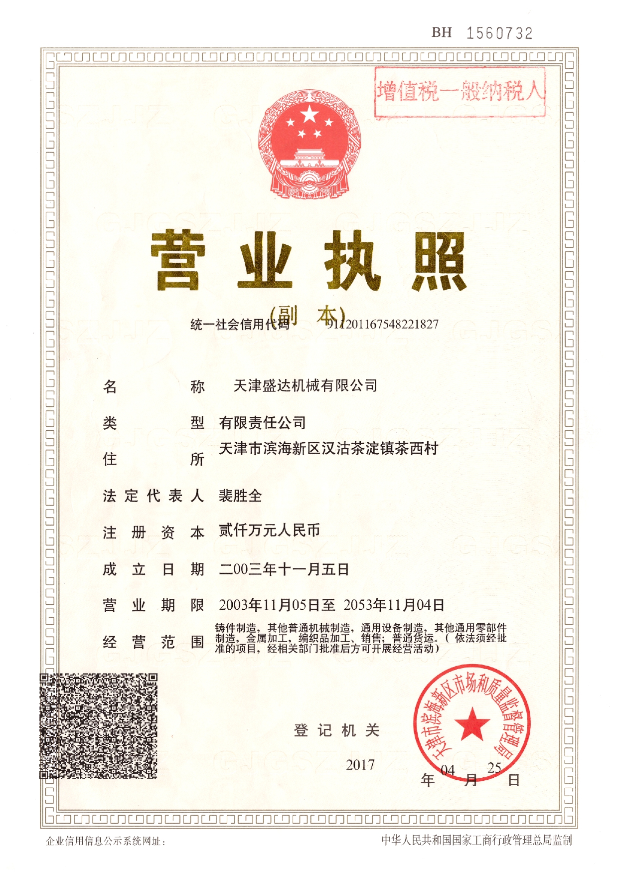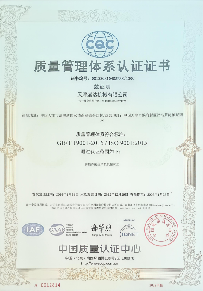 天津盛达机械有限公司(Tianjin Shengda MAchinery Co.,Ltd)成立于2003年11月,坐落在天津市滨海新区汉沽茶淀工业园区,是一家致力于铸件制造和机加工的专业公司。公司主要经营包括一家专注于高品质铸件制造的公司,成立于2003年。我们主要生产减速机箱体和中大型铸件,年产量能达到6000吨。我们的铸件广泛应用于工程机械、汽车制造、船舶设备等多个行业。